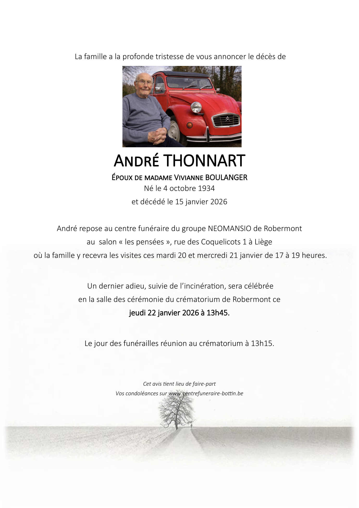 Died in Liège (4000) on 15 January 2026 at the age of 91 years