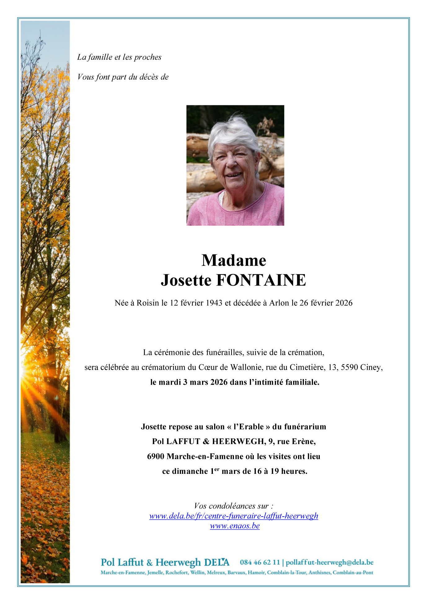 Died in Arlon (6700) on 26 February 2026 at the age of 83 years