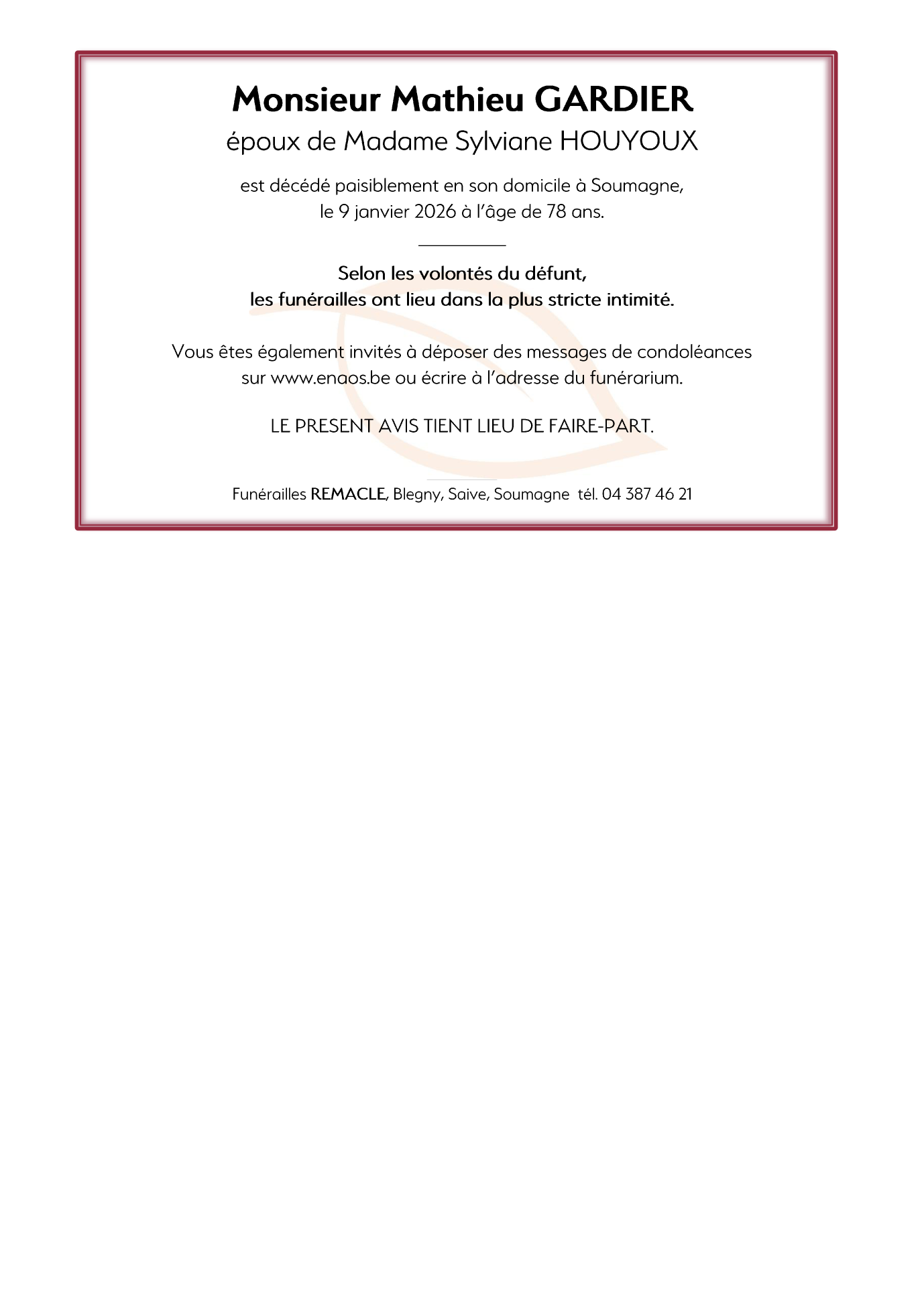 Died in Soumagne (4630) on 09 January 2026 at the age of 78 years