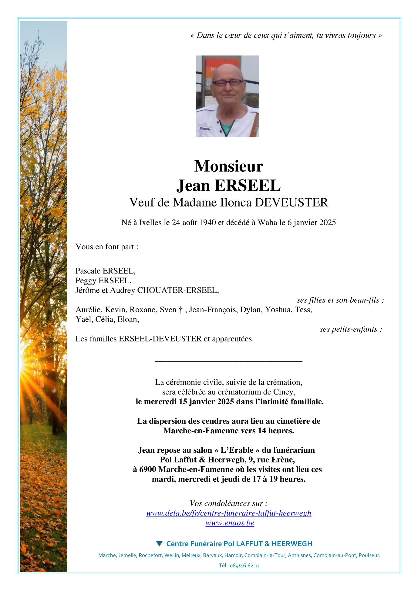 Overleden te Waha (6900) op maandag 6 januari 2025 op 84-jarige leeftijd