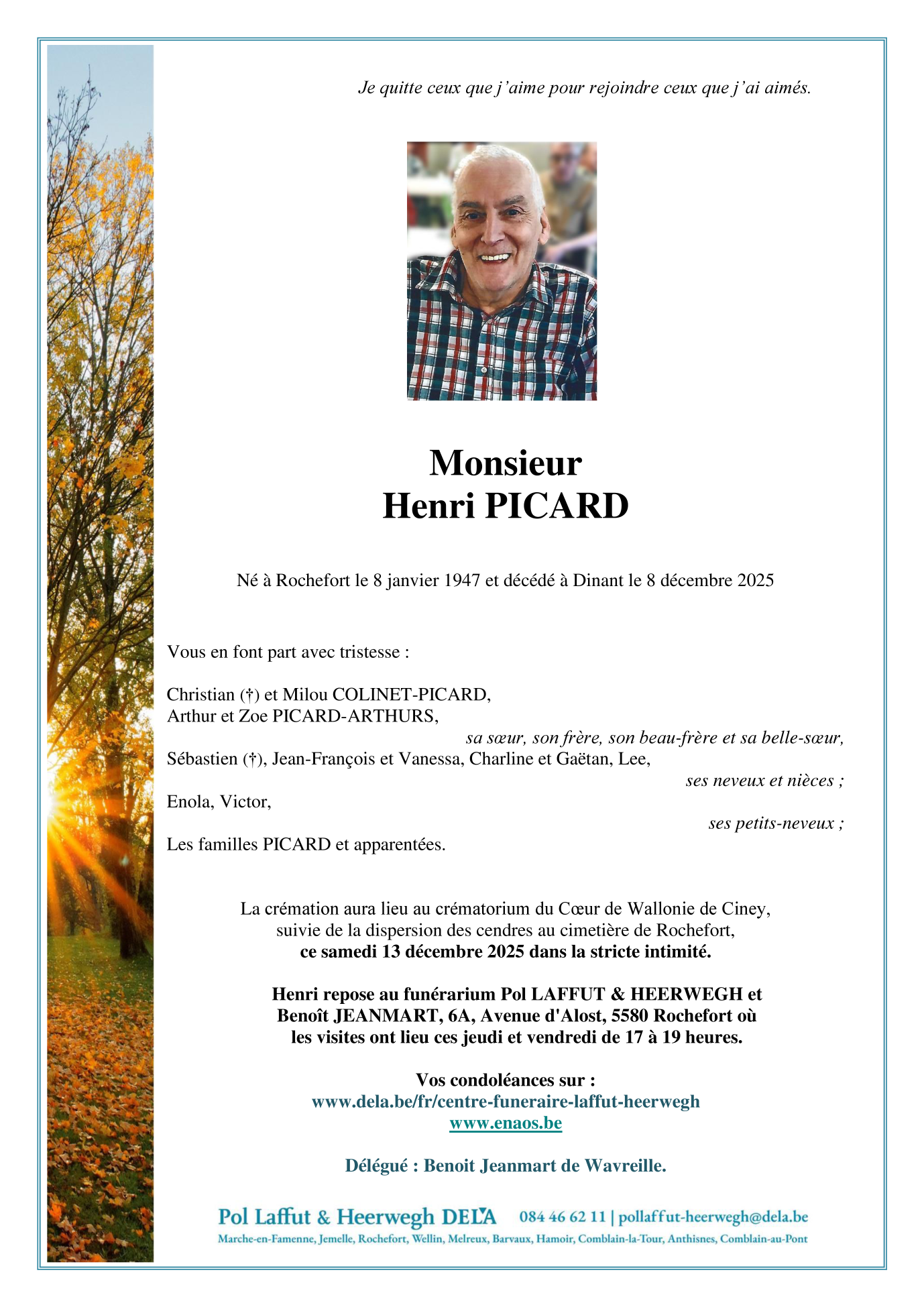 Fallecido en Dinant (5500) el lunes, 8 de diciembre de 2025 a la edad de 78 años