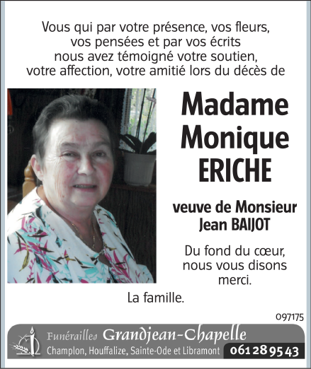 Fallecida en Libramont (6800) el jueves, 13 de noviembre de 2025 a la edad de 83 años