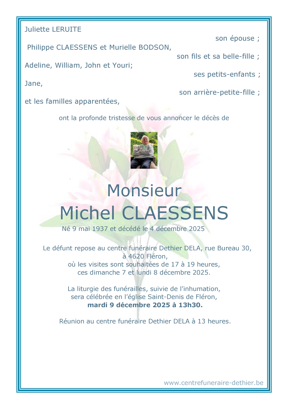 Décédé à Chênée (4032) le jeudi 4 décembre 2025 à l'âge de 88 ans