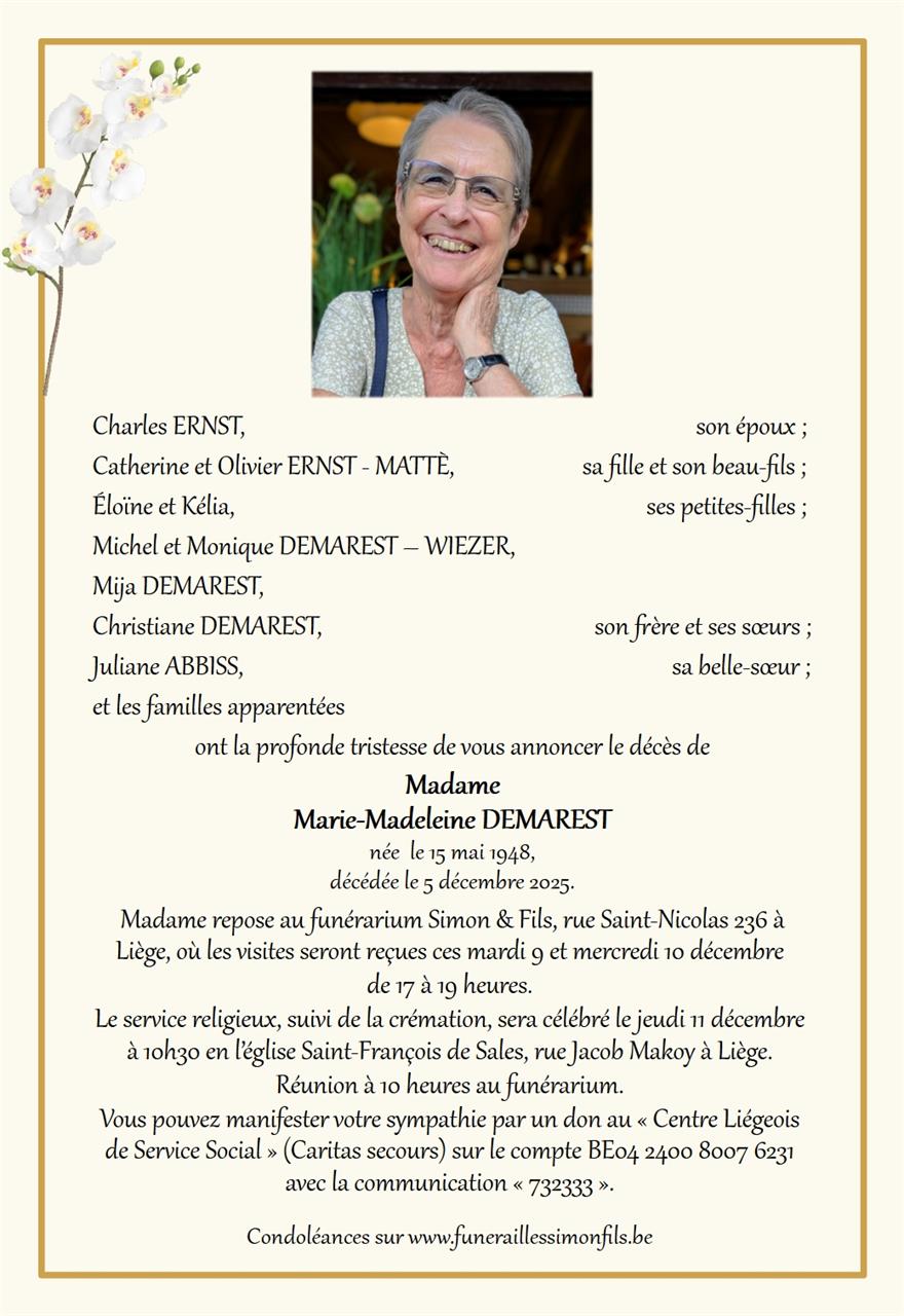 Died in Liège (4000) on 05 December 2025 at the age of 77 years