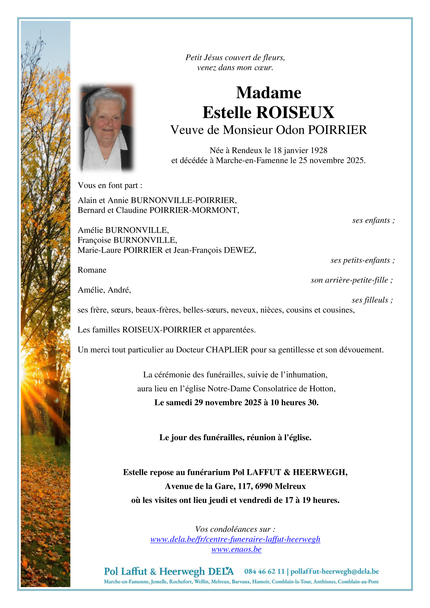 Née à Rendeux (6987) le mercredi 18 janvier 1928