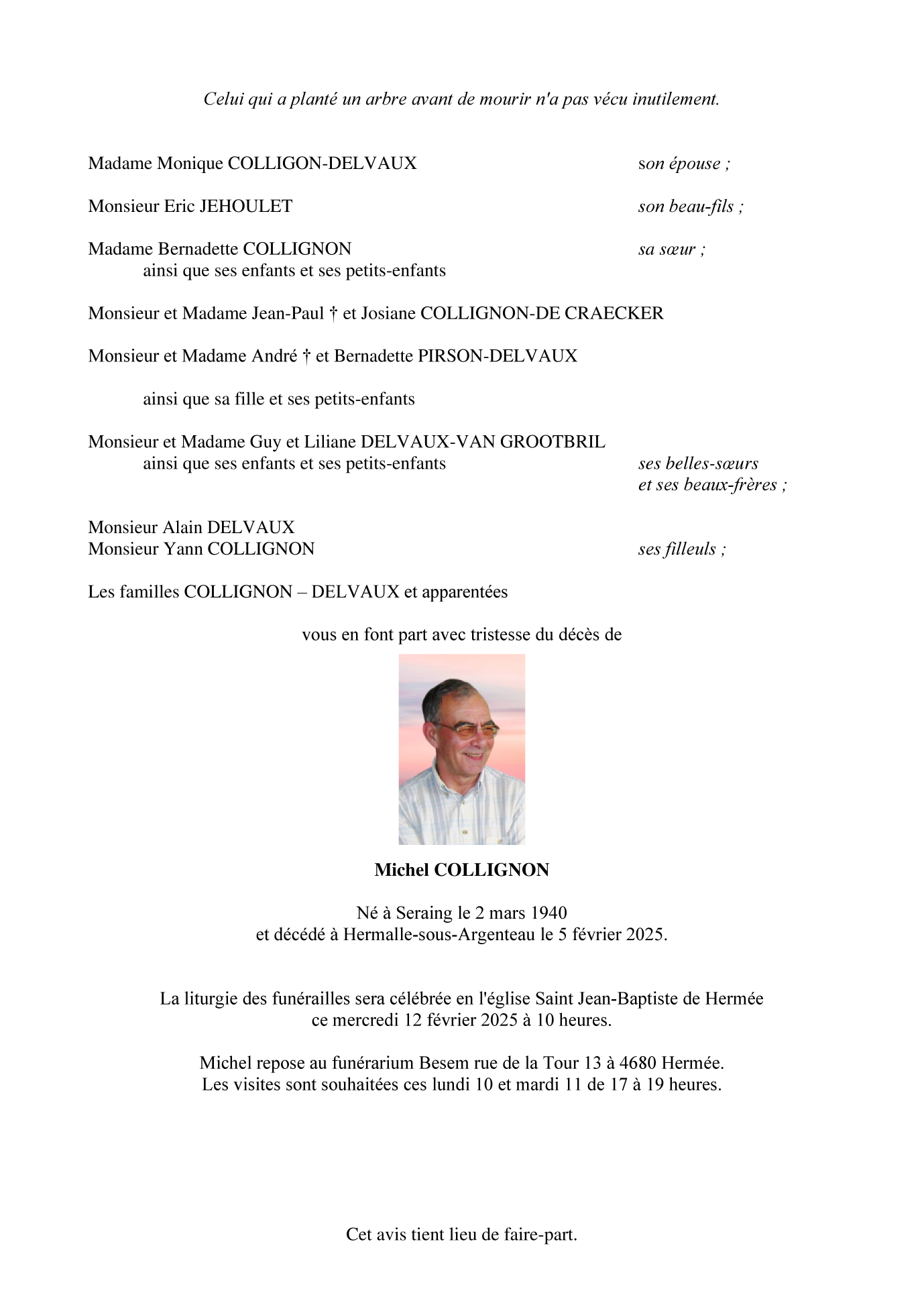 Fallecido en Hermalle-sous-Argenteau (4681) el miércoles, 5 de febrero de 2025 a la edad de 84 años