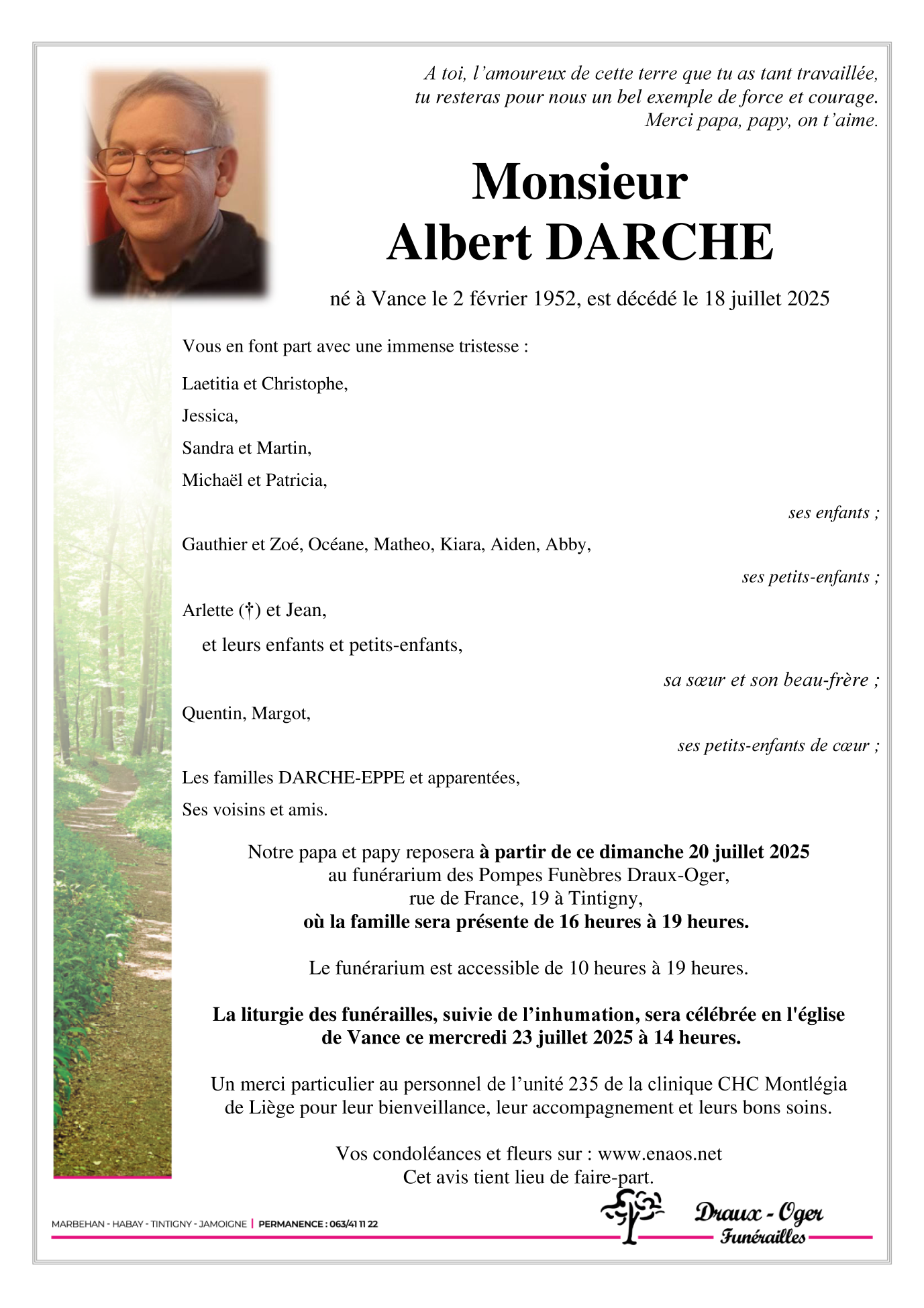 Died in « Localité inconnue » on 18 July 2025 at the age of 73 years