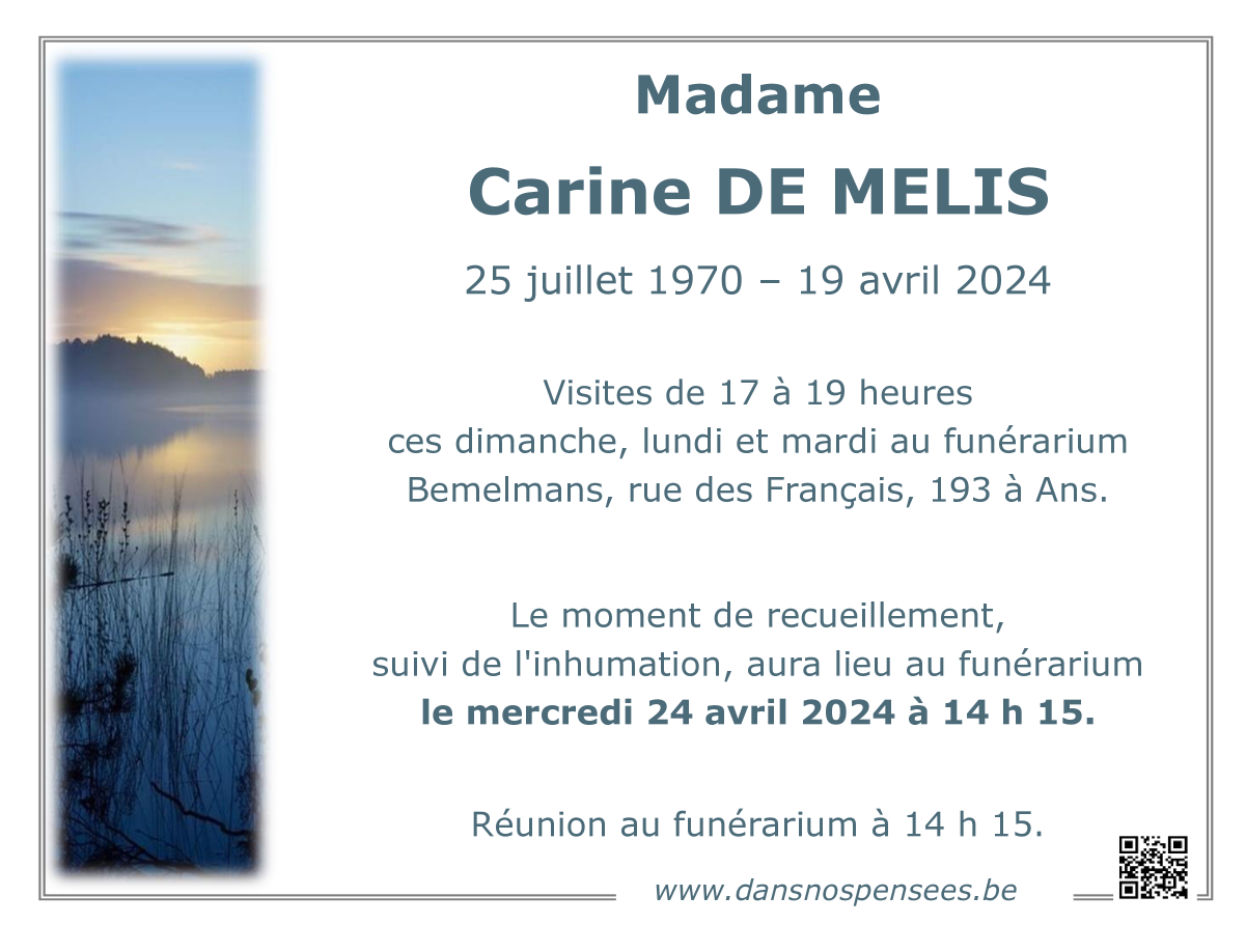 Décédée à Liège (4000) le vendredi 19 avril 2024 à l'âge de 53 ans