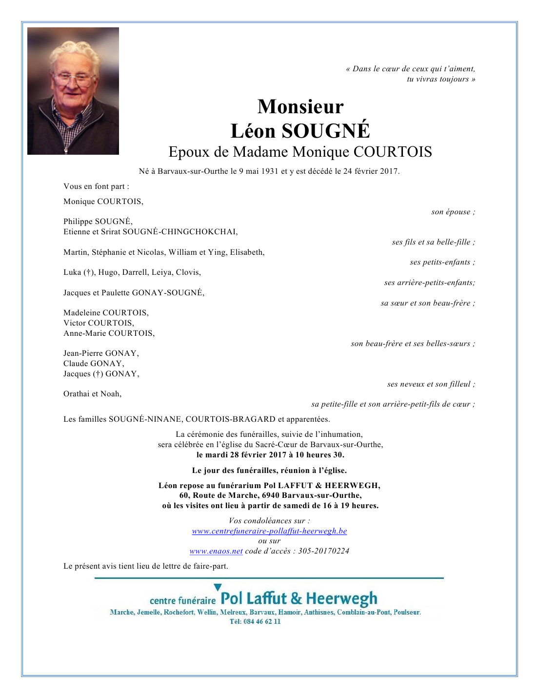 Died in Barvaux-sur-Ourthe (6940) on 24 February 2017 at the age of 85 years