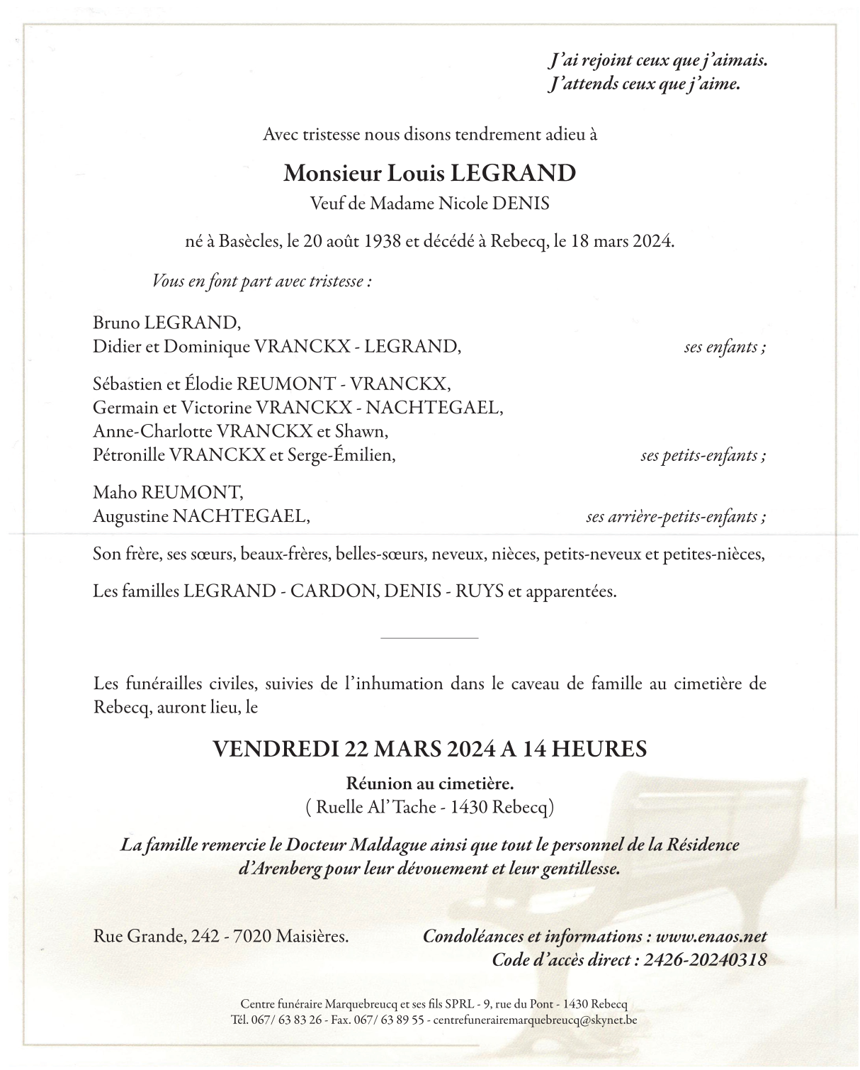 Overleden te Rebecq (1430) op maandag 18 maart 2024 op 85-jarige leeftijd