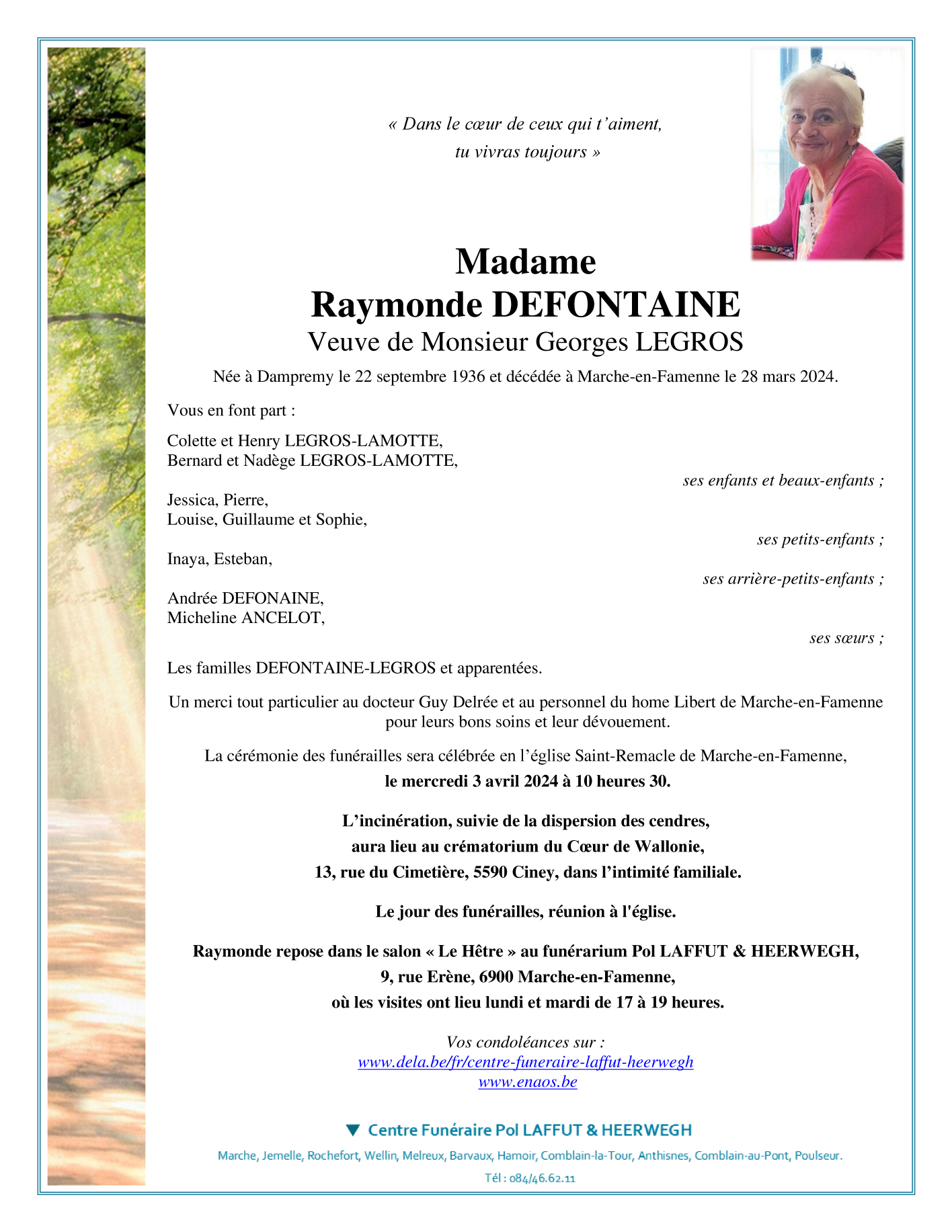 Madame Raymonde DEFONTAINE