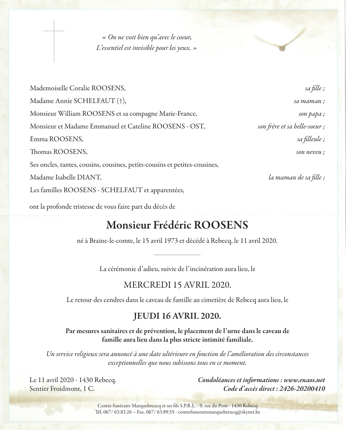 Fallecido en Rebecq (1430) el sábado, 11 de abril de 2020 a la edad de 46 años