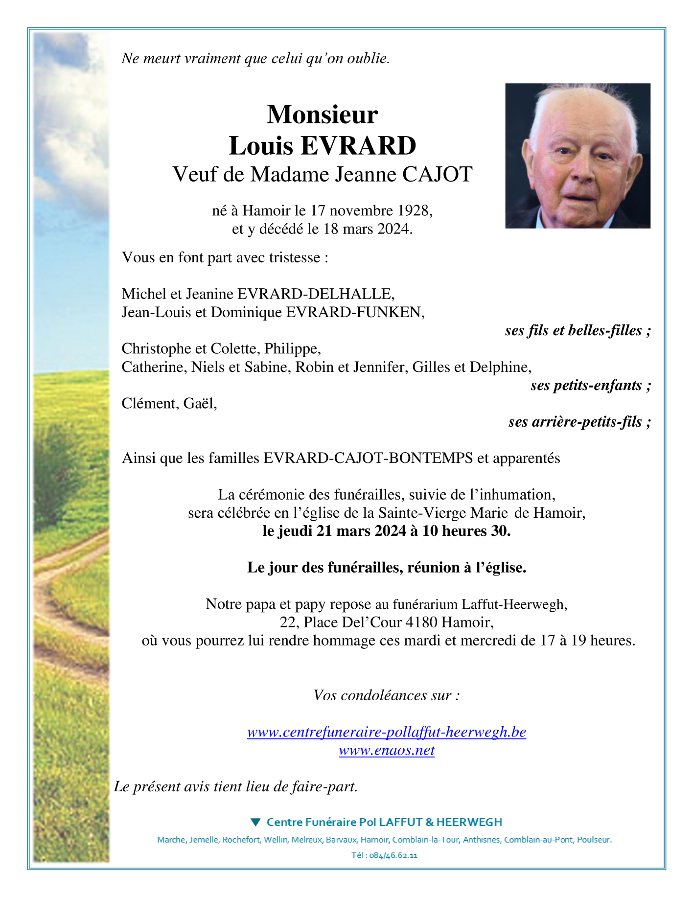 Overleden te Hamoir (4180) op maandag 18 maart 2024 op 95-jarige leeftijd