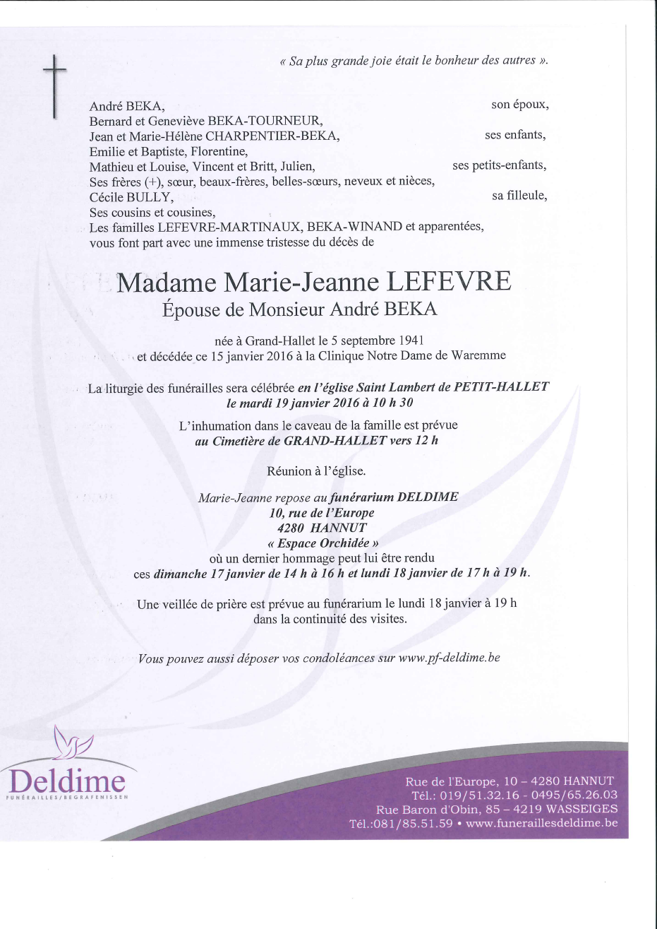 Madame Marie-Jeanne LEFEVRE