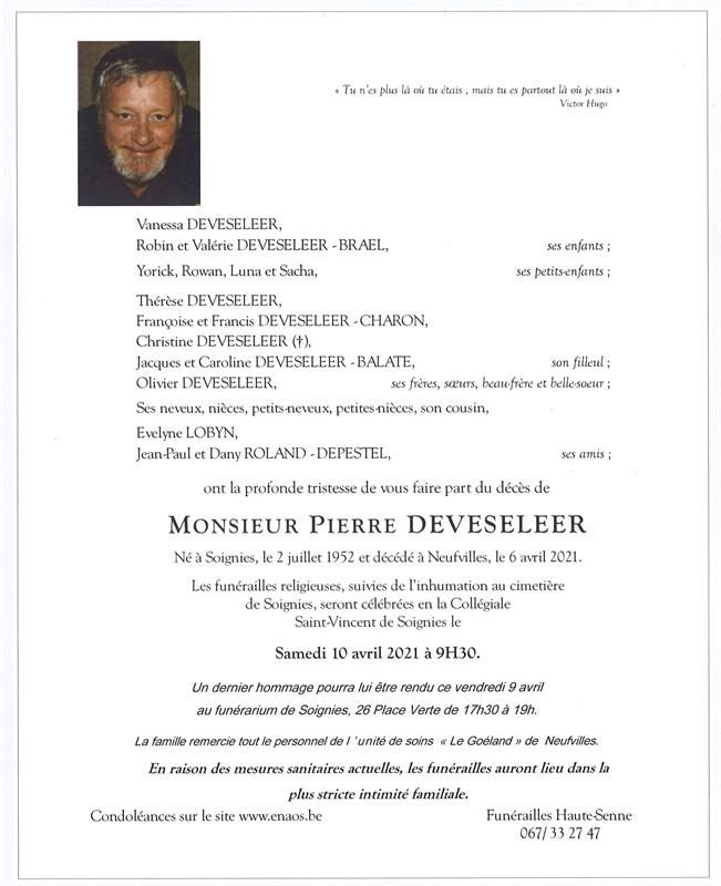 Overleden te Neufvilles (7063) op dinsdag 6 april 2021 op 68-jarige leeftijd