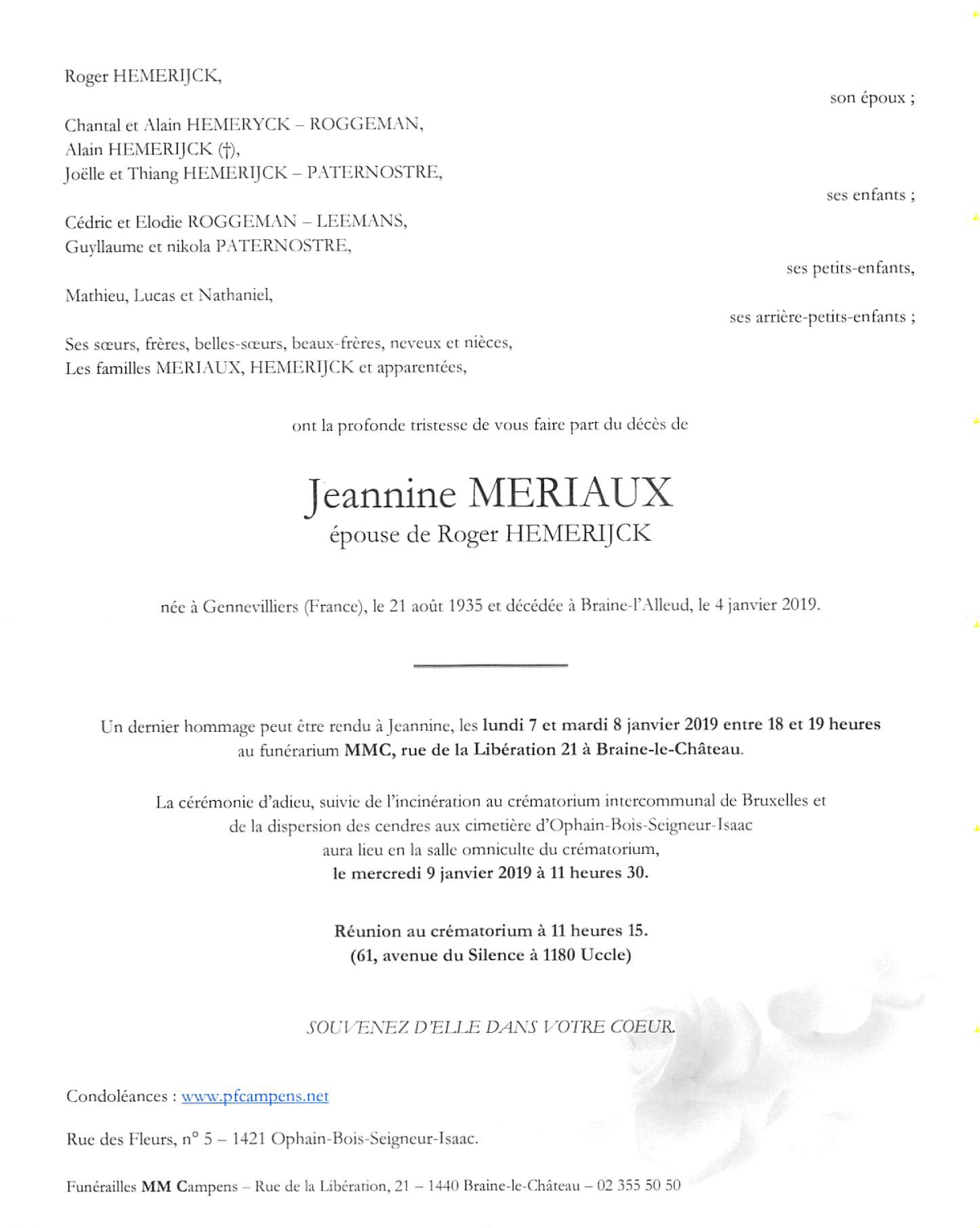Epouse de Monsieur Roger HEMERIJCK