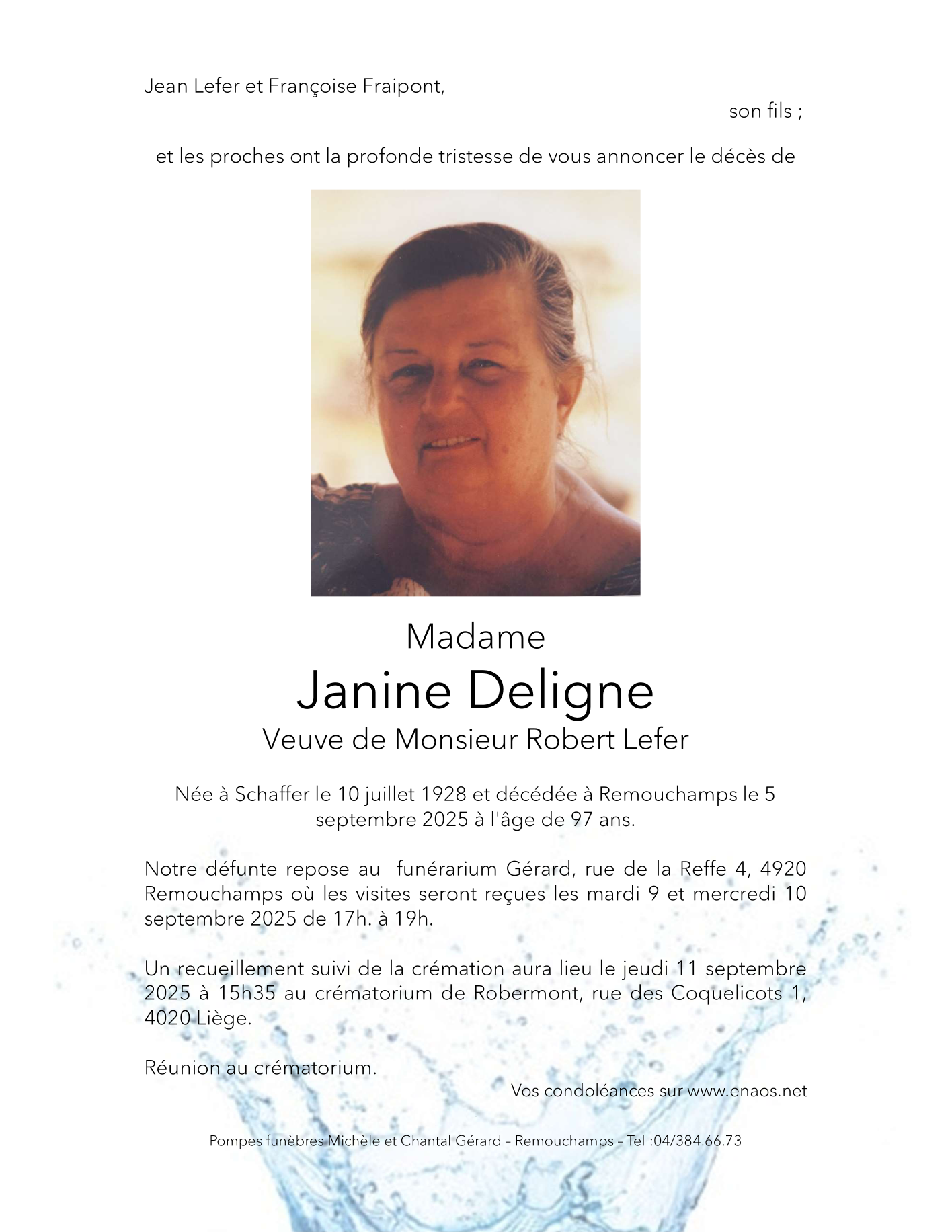 Fallecida en Aywaille (4920) el viernes, 5 de septiembre de 2025 a la edad de 97 años