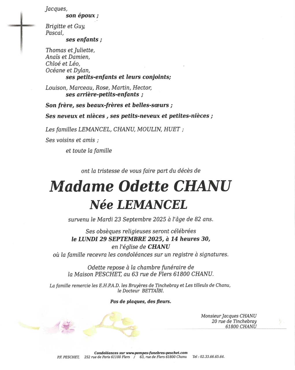 Died in Chanu (61800, France) on 23 September 2025 at the age of 82 years
