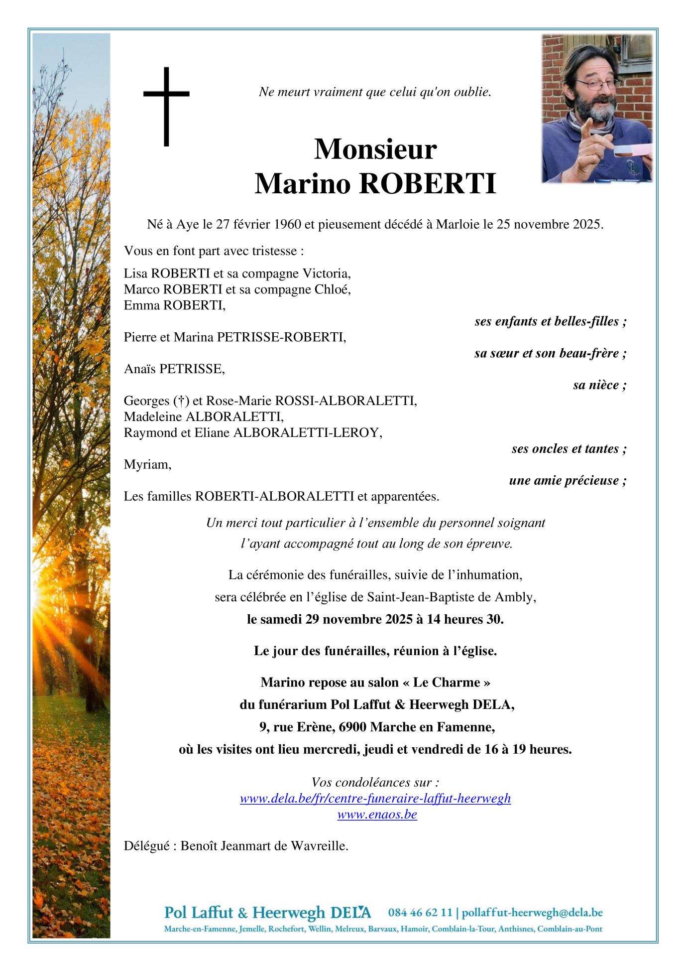 Décédé à Marloie (6900) le mardi 25 novembre 2025 à l'âge de 65 ans