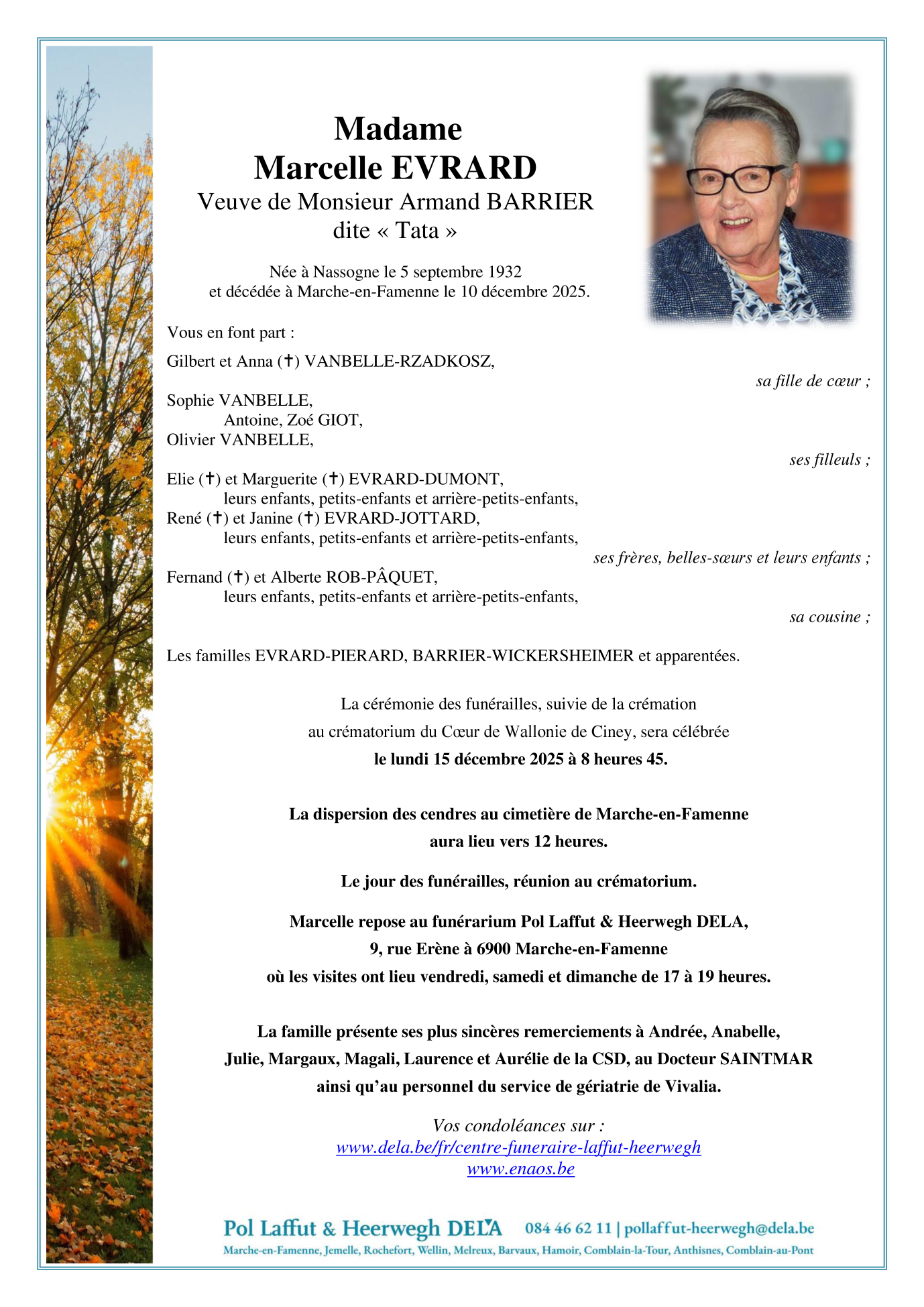 Died in Marche-en-Famenne (6900) on 10 December 2025 at the age of 93 years