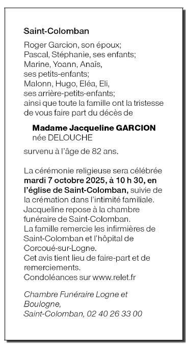 Madame Jacqueline GARCION geboren DELOUCHE