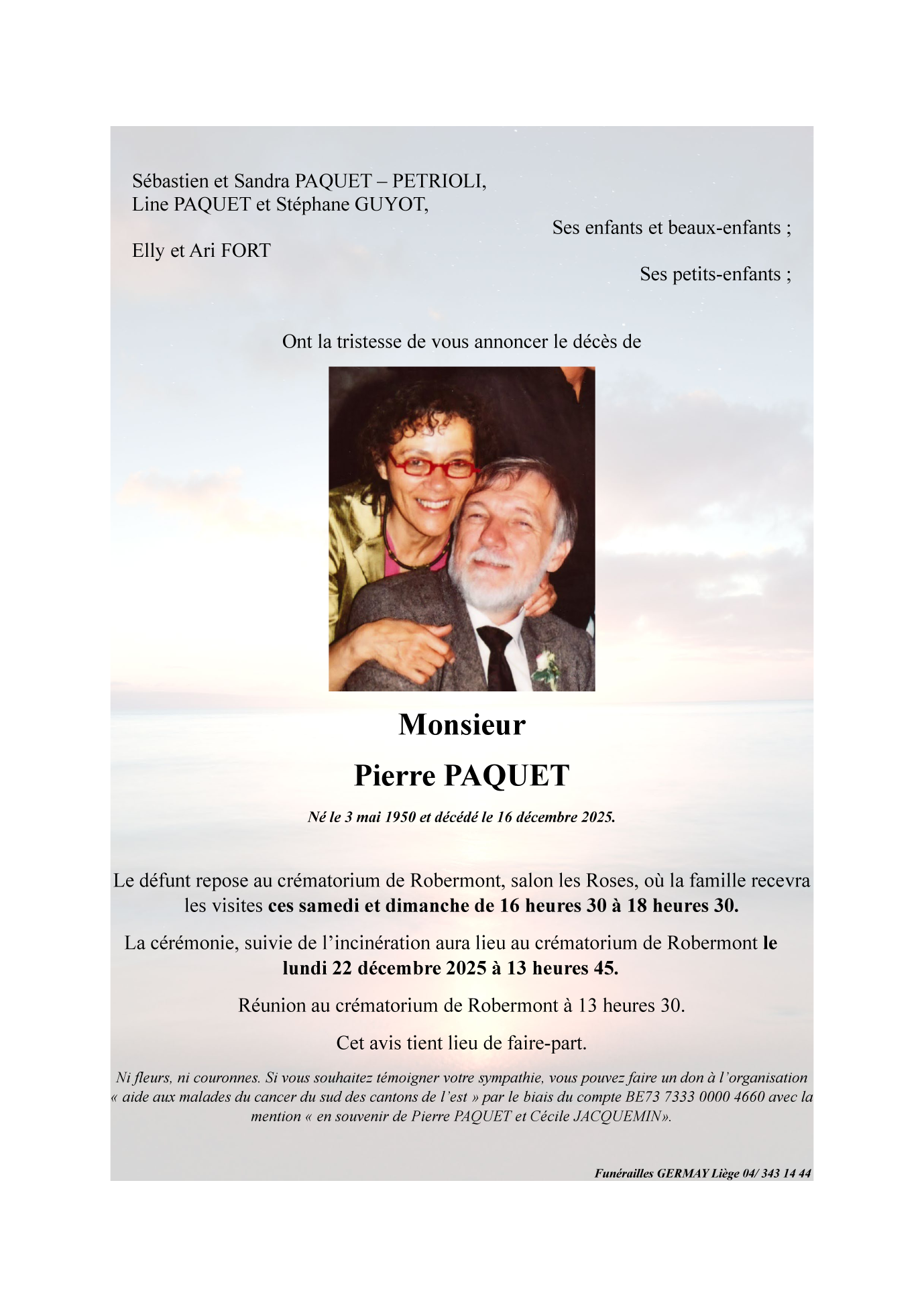 Décédé à Liège (4000) le mardi 16 décembre 2025 à l'âge de 75 ans