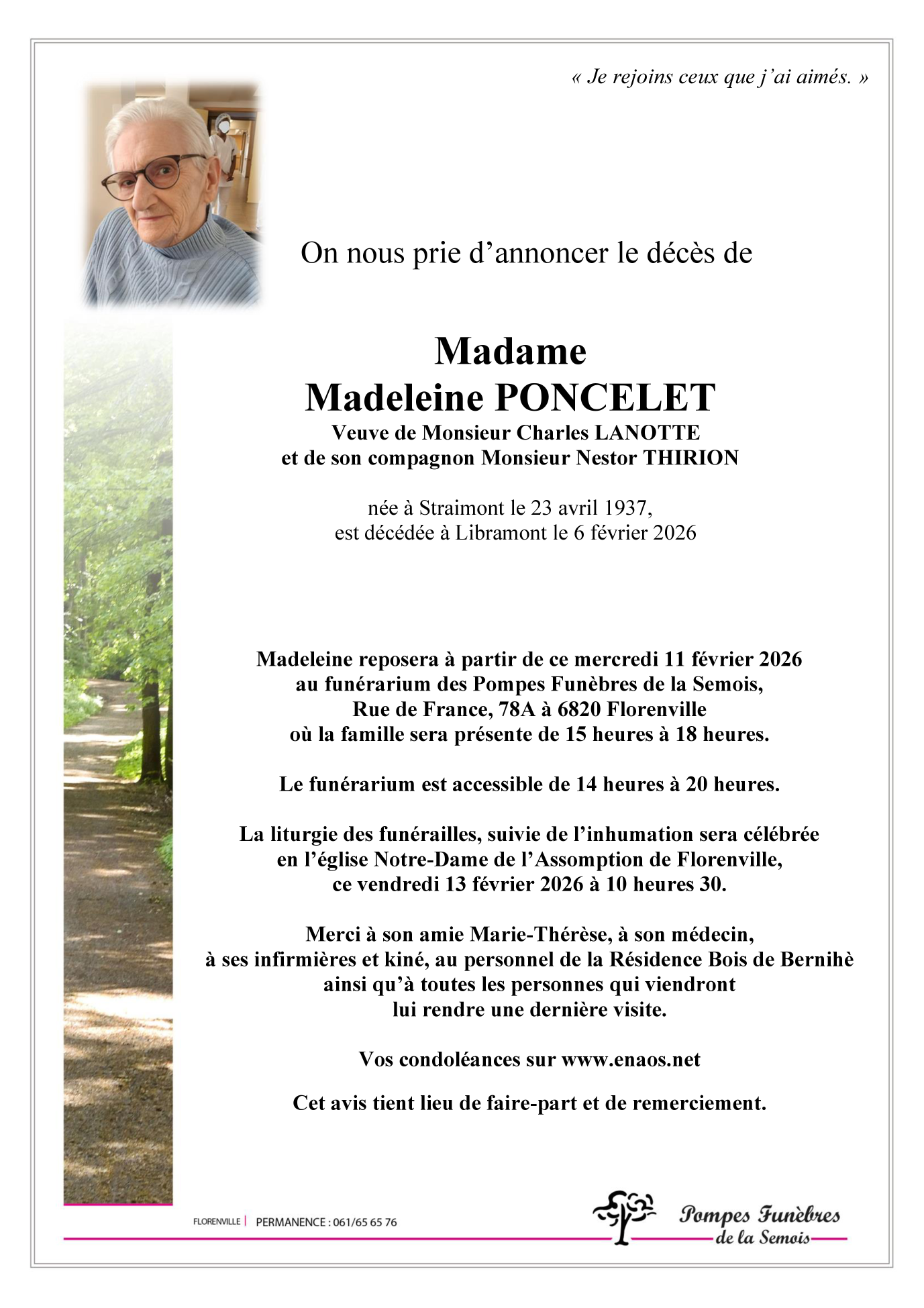 Décédée à Libramont-Chevigny (6800) le vendredi 6 février 2026 à l'âge de 88 ans