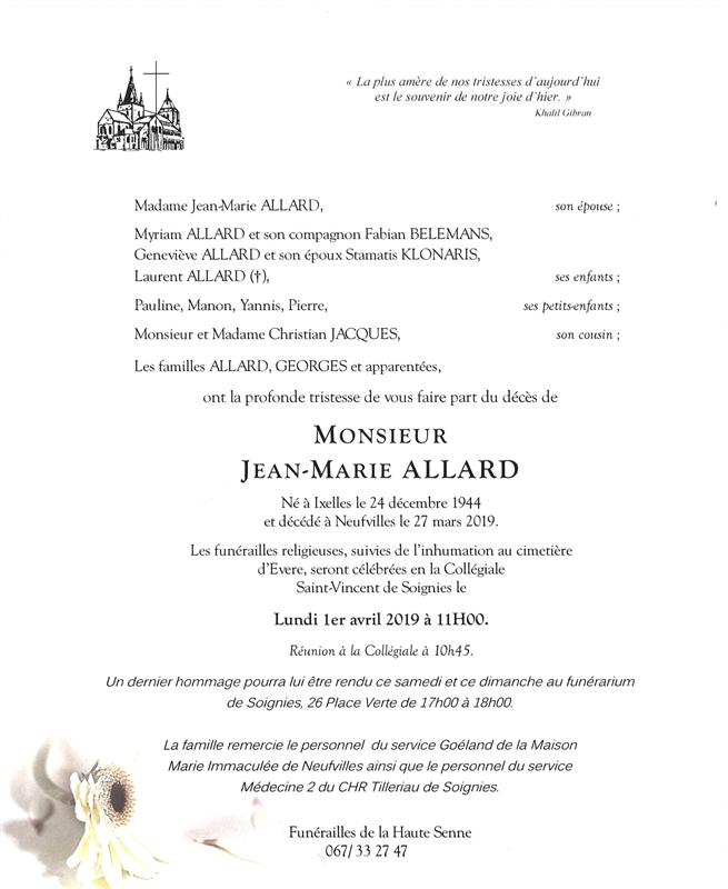 Décédé à Neufvilles (7063) le mercredi 27 mars 2019 à l'âge de 74 ans