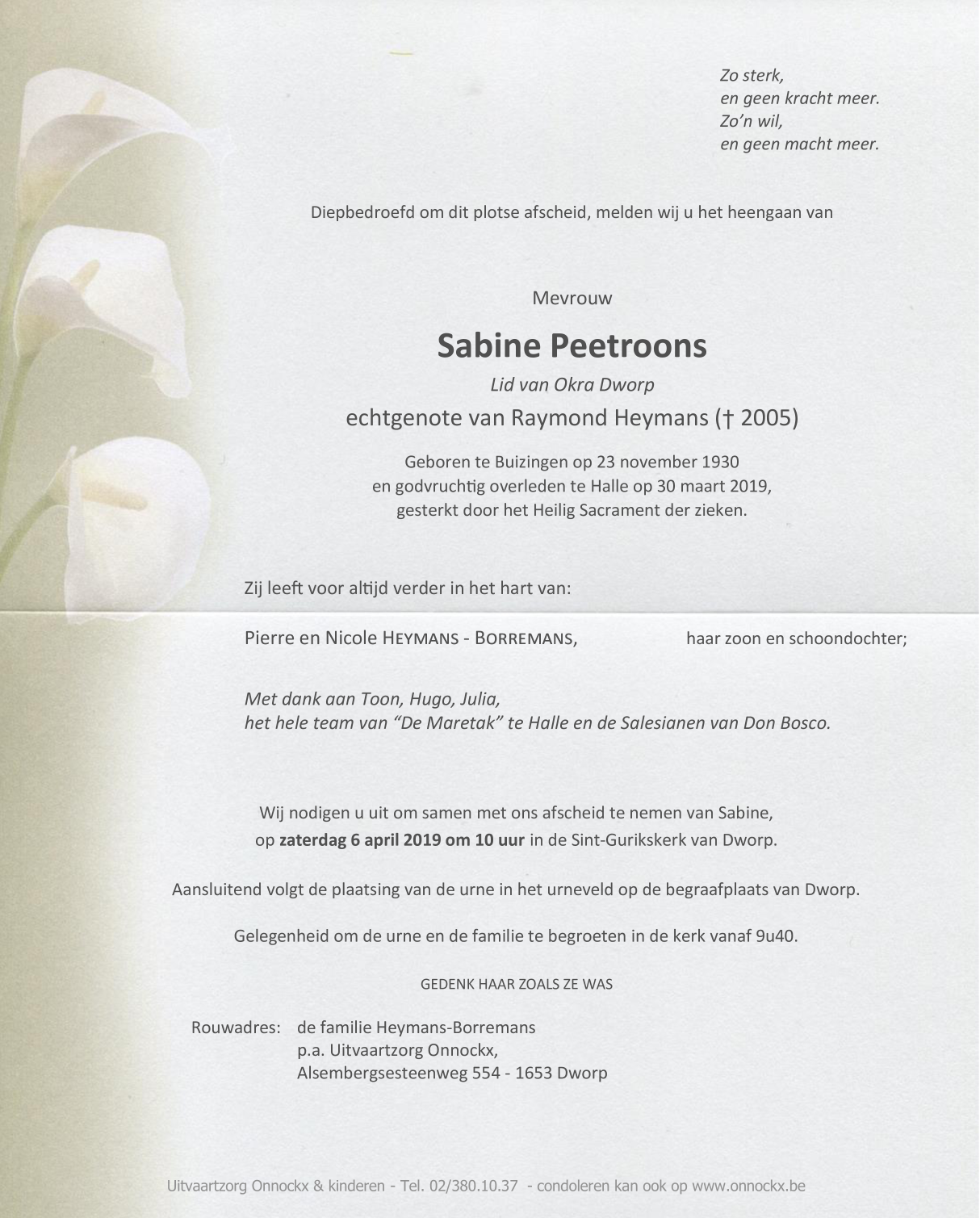Veuve de de heer Raymond Heymans