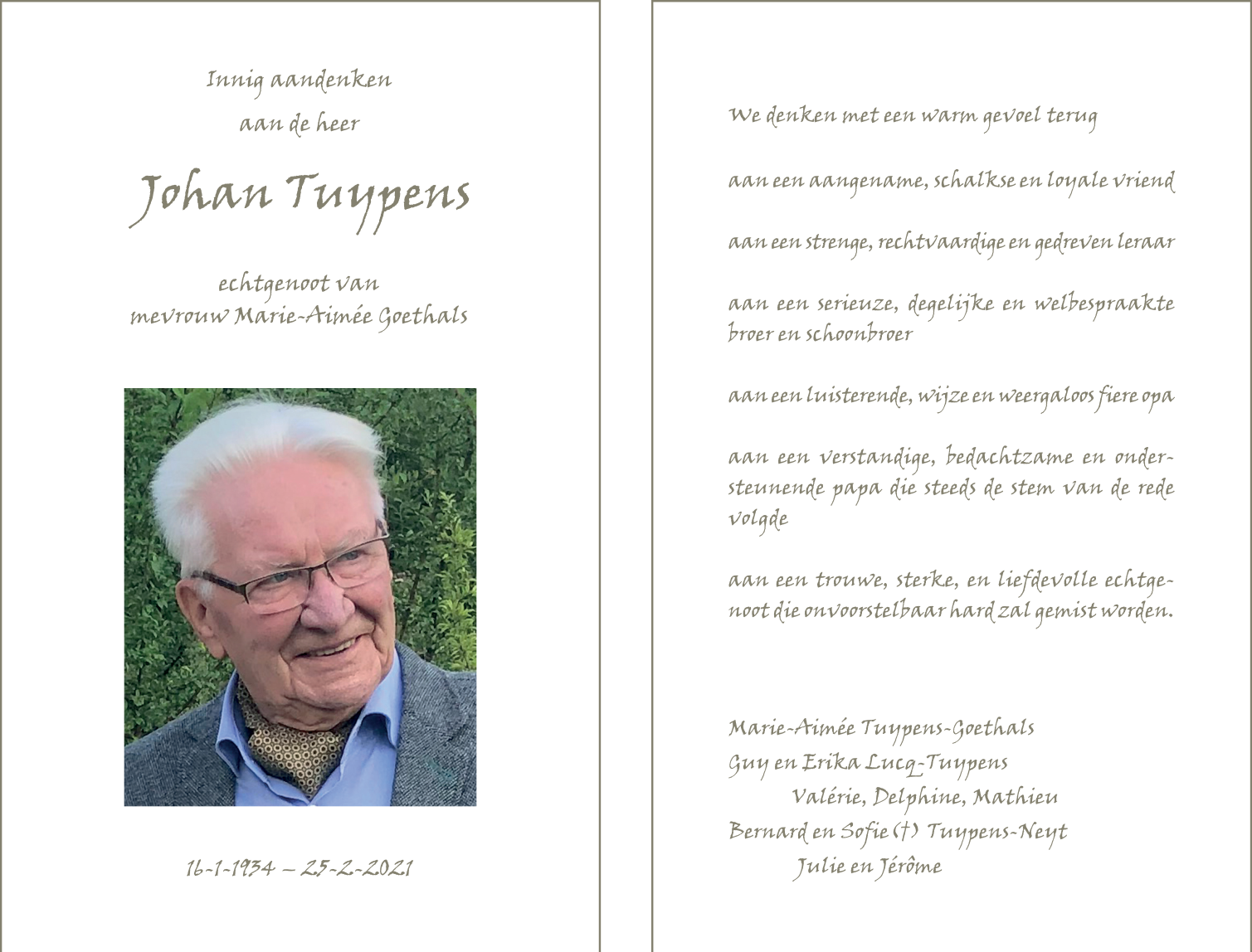 Died in Eeklo (9900) on 25 February 2021 at the age of 87 years