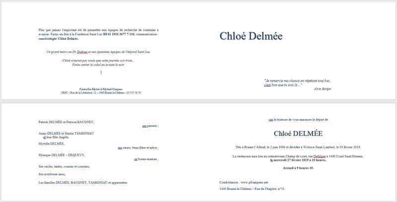 Décédée à Woluwe-Saint-Lambert (1200) le mardi 19 février 2019 à l'âge de 32 ans