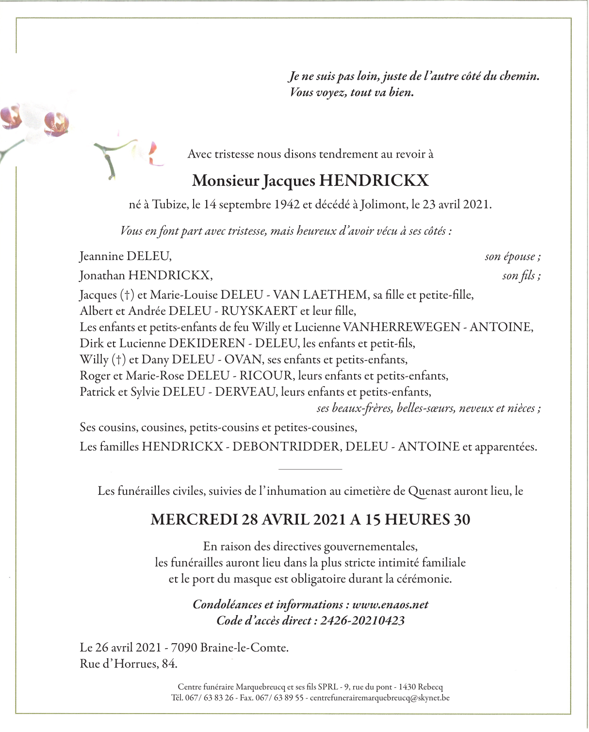 Décédé à Jolimont (7100) le vendredi 23 avril 2021 à l'âge de 78 ans