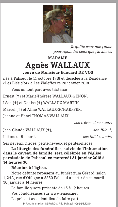 Veuf de née Agnès WALLAUX