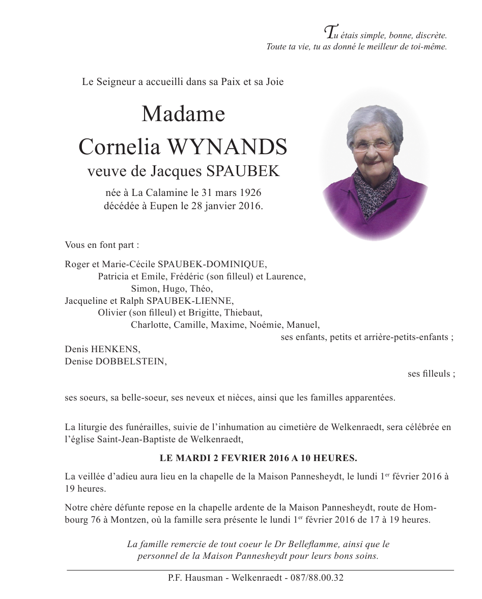 Overleden te Eupen (4700) op donderdag 28 januari 2016 op 89-jarige leeftijd