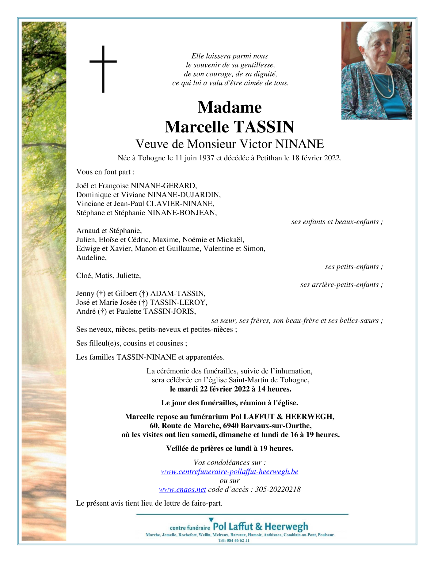 Died in Petit-Han (6940) on 18 February 2022 at the age of 84 years