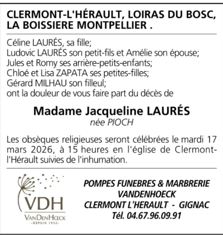 Madame Jacqueline LAURES née PIOCH