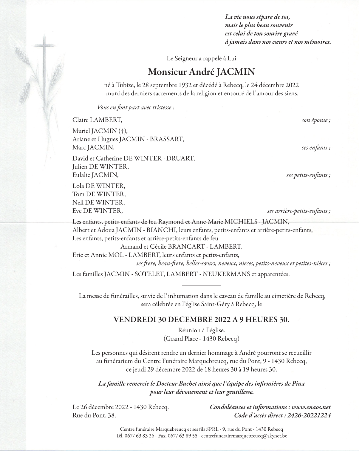Décédé à Rebecq (1430) le samedi 24 décembre 2022 à l'âge de 90 ans