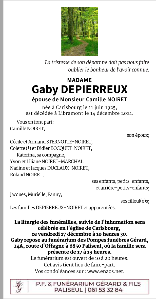 Died in Libramont (6800) on 14 December 2021 at the age of 96 years