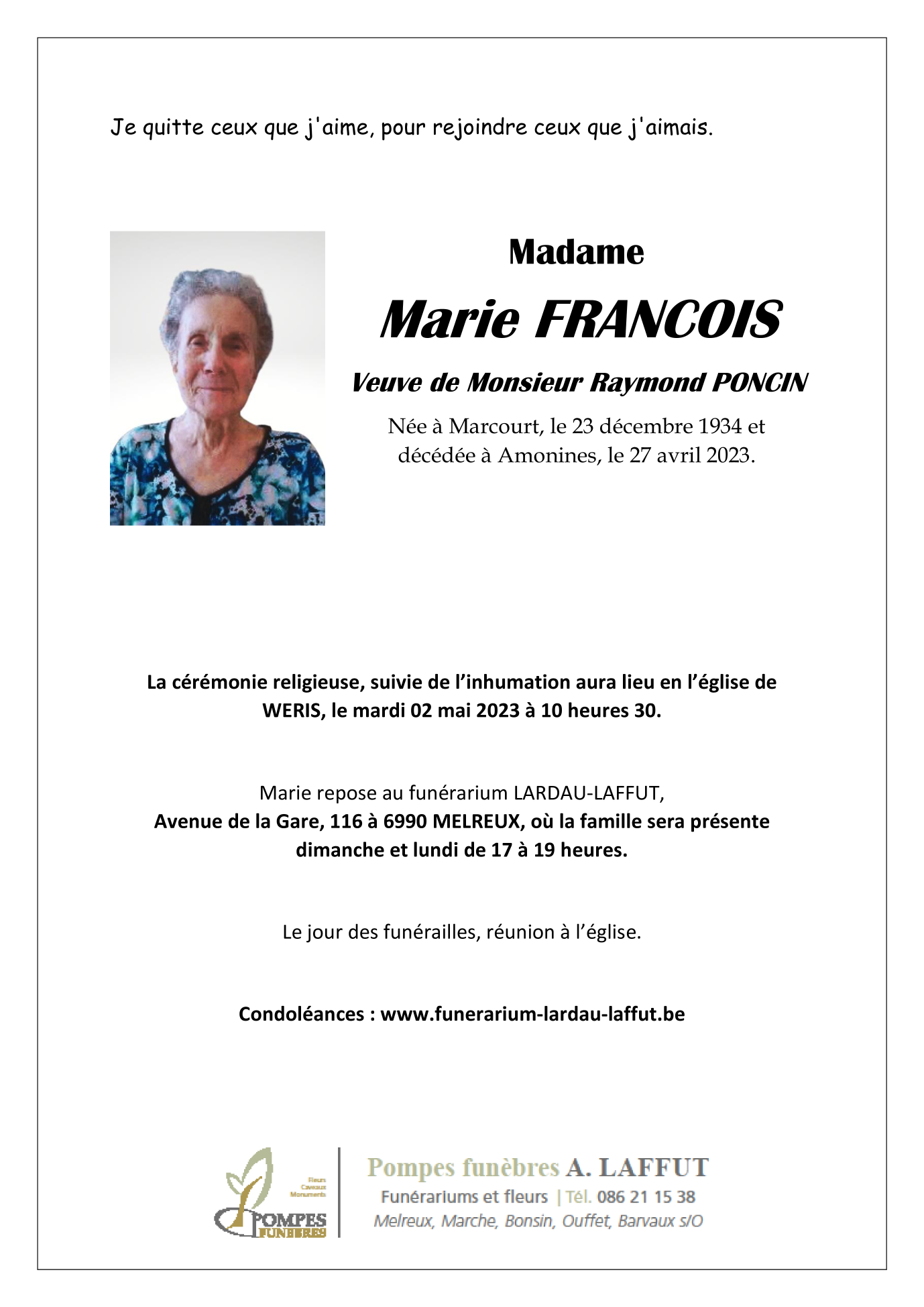 Veuve de Monsieur PONCIN Raymond