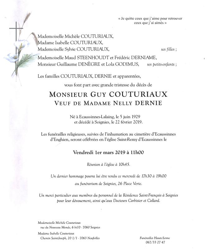 Overleden te Soignies (7060) op vrijdag 22 februari 2019 op 89-jarige leeftijd