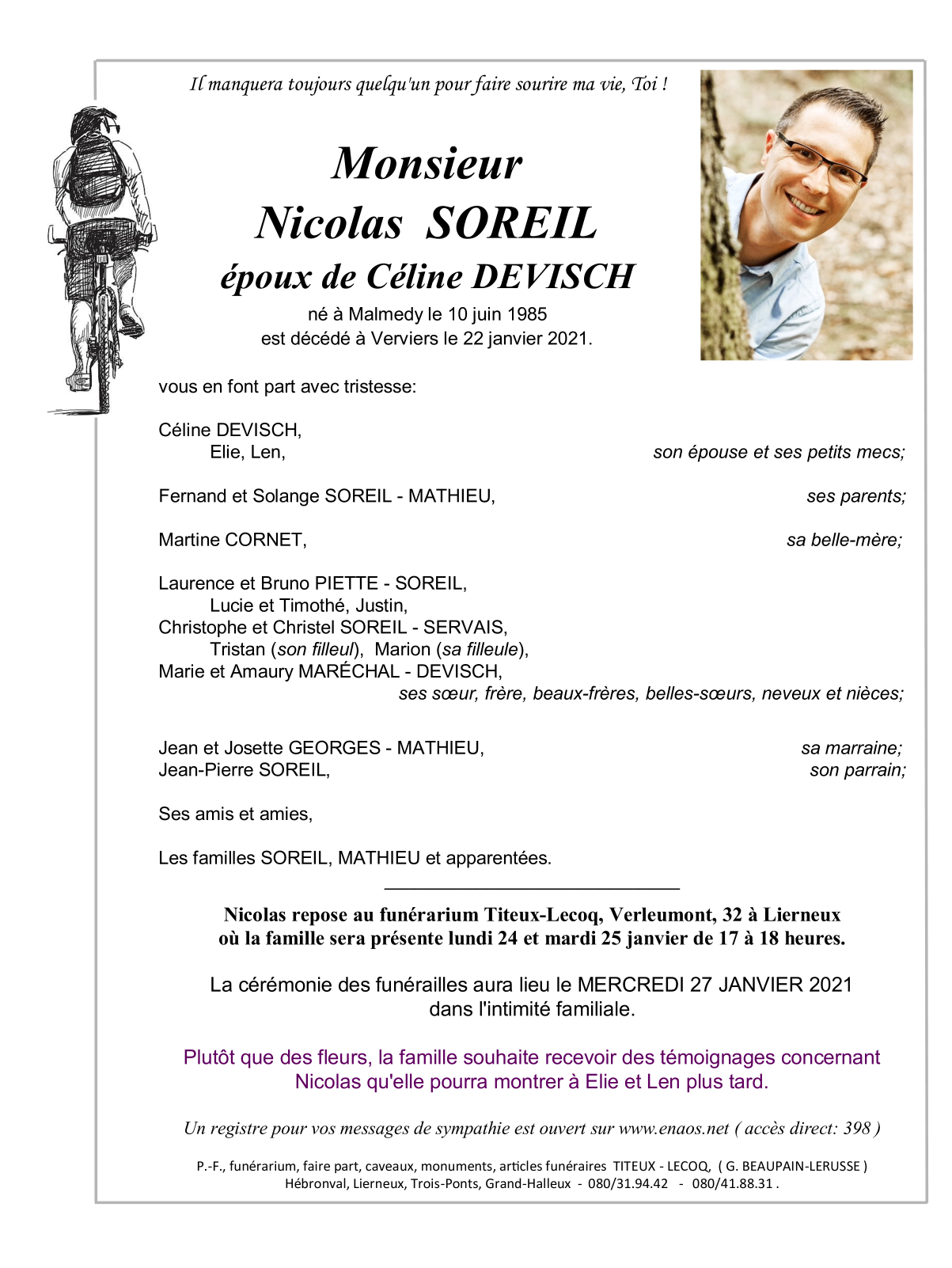 Décédé à Verviers (4800) le vendredi 22 janvier 2021 à l'âge de 35 ans