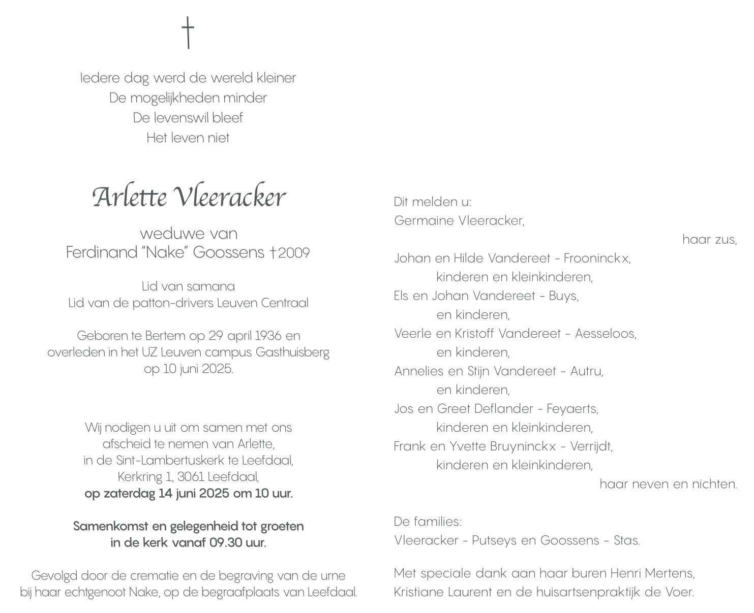 Overleden te Leuven (3000) op dinsdag 10 juni 2025 op 89-jarige leeftijd