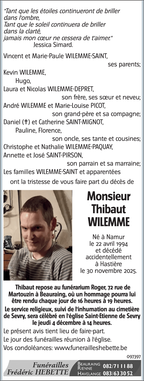 Died in Hastière (5540) on 30 November 2025 at the age of 31 years