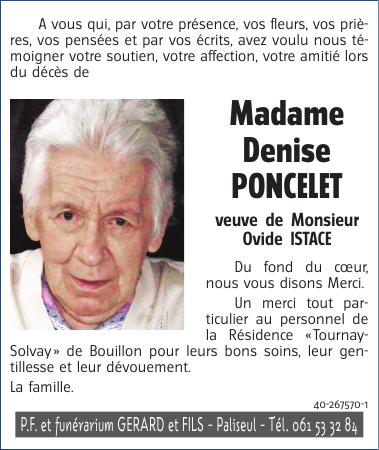 Décédée à Bouillon (6830) le vendredi 24 mars 2017 à l'âge de 93 ans