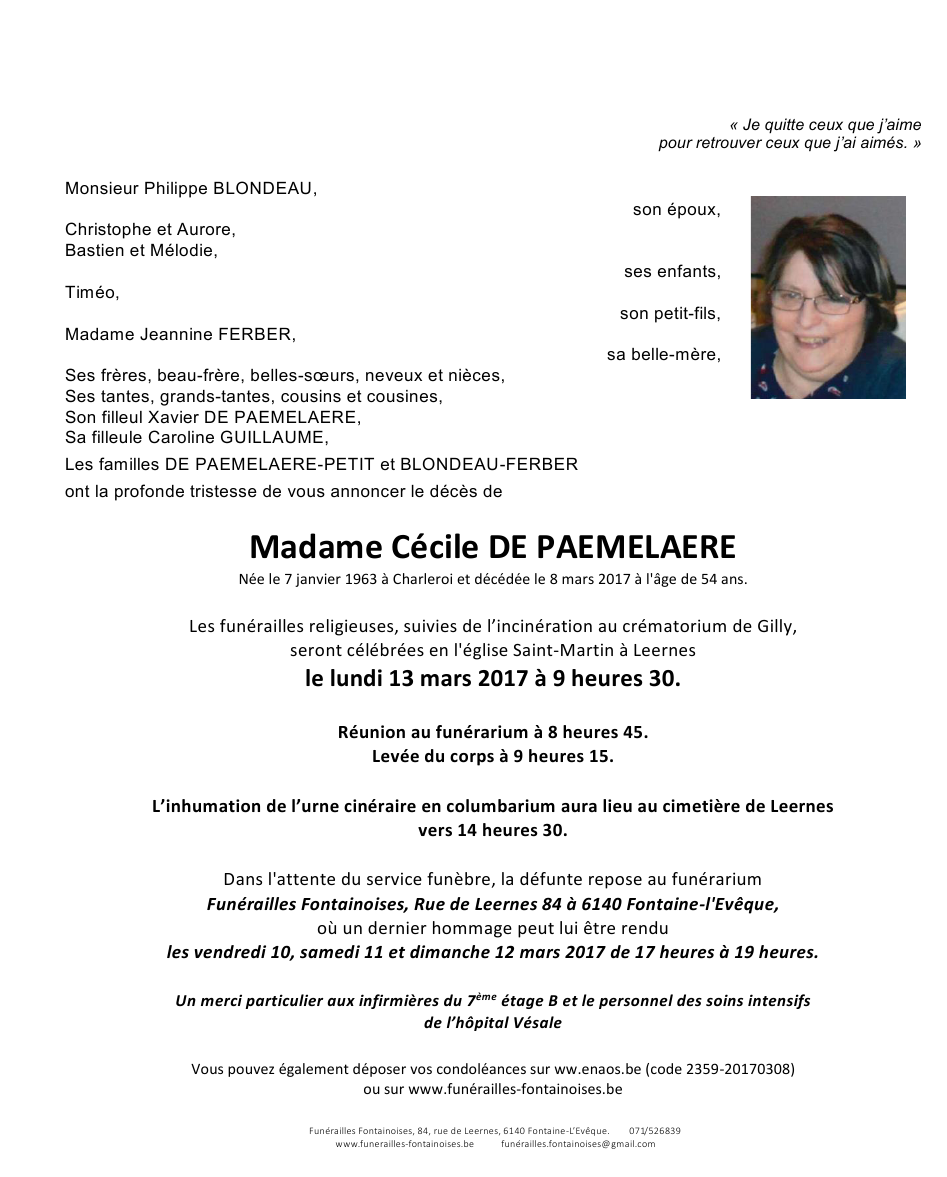 Died in Montigny-le-Tilleul (6110) on 08 March 2017 at the age of 54 years