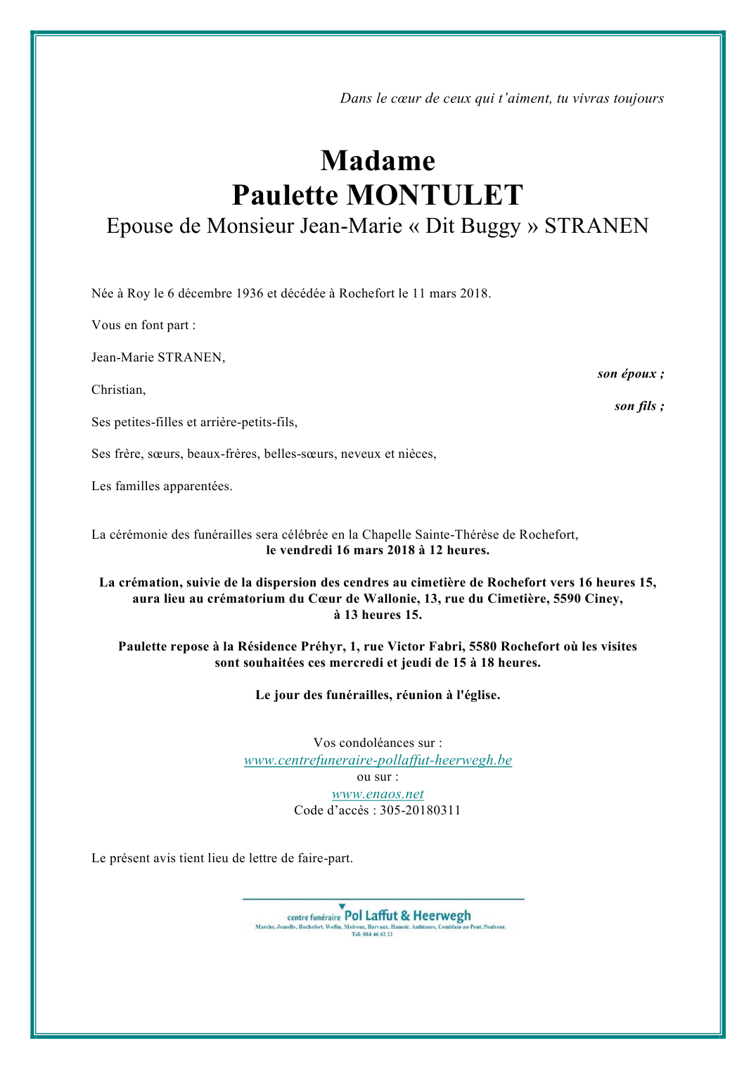 Annonce nécrologique