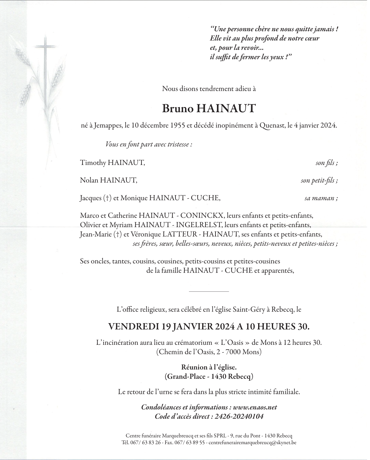 Décédé à Quenast (1430) le jeudi 4 janvier 2024 à l'âge de 68 ans