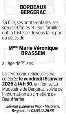 Died in Sainte-Foy-la-Grande (33220, France) on 10 January 2026 at the age of 75 years