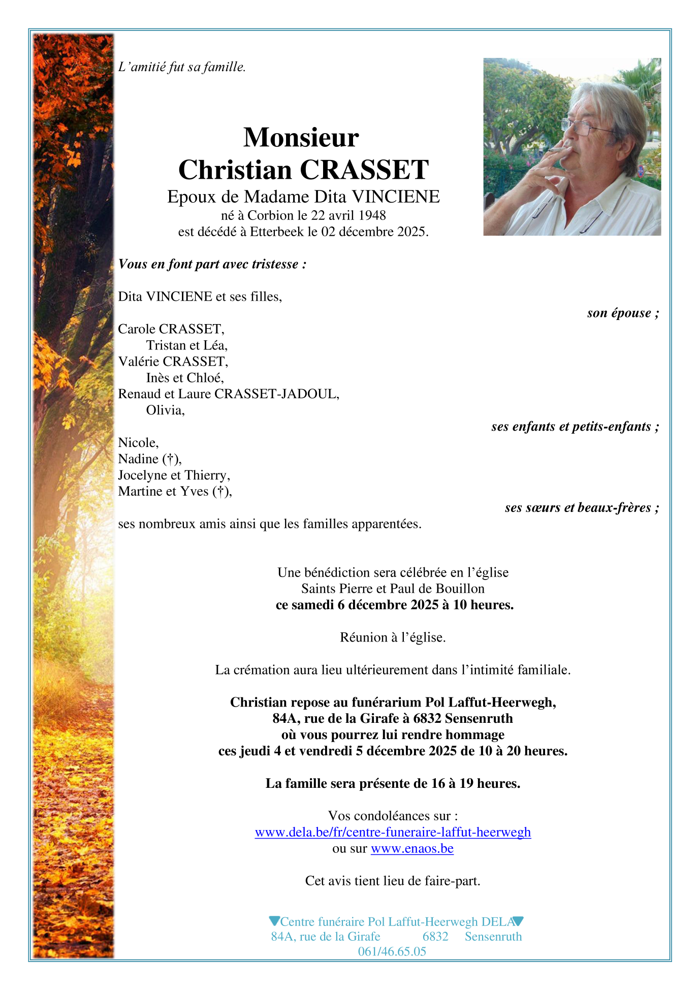 Overleden te Etterbeek (1040) op dinsdag 2 december 2025 op 77-jarige leeftijd