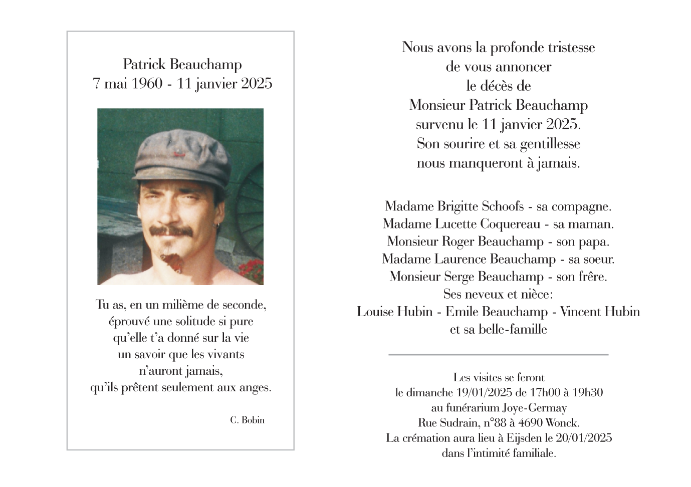 Died in Hermalle-sous-Argenteau (4681) on 11 January 2025 at the age of 64 years